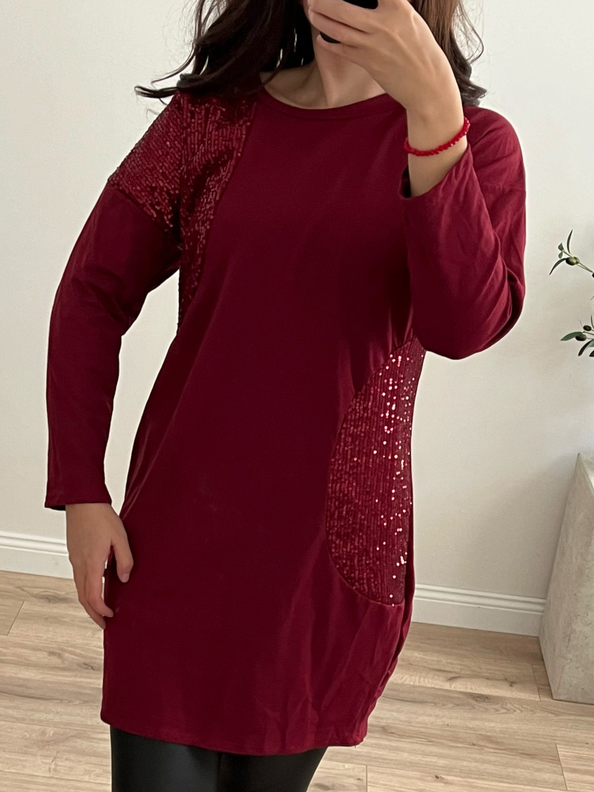 Pamučna  tunika dugih rukava s decentnim šljokicama ,savršena za nadolazeće svečane dane i još mnogo toga.