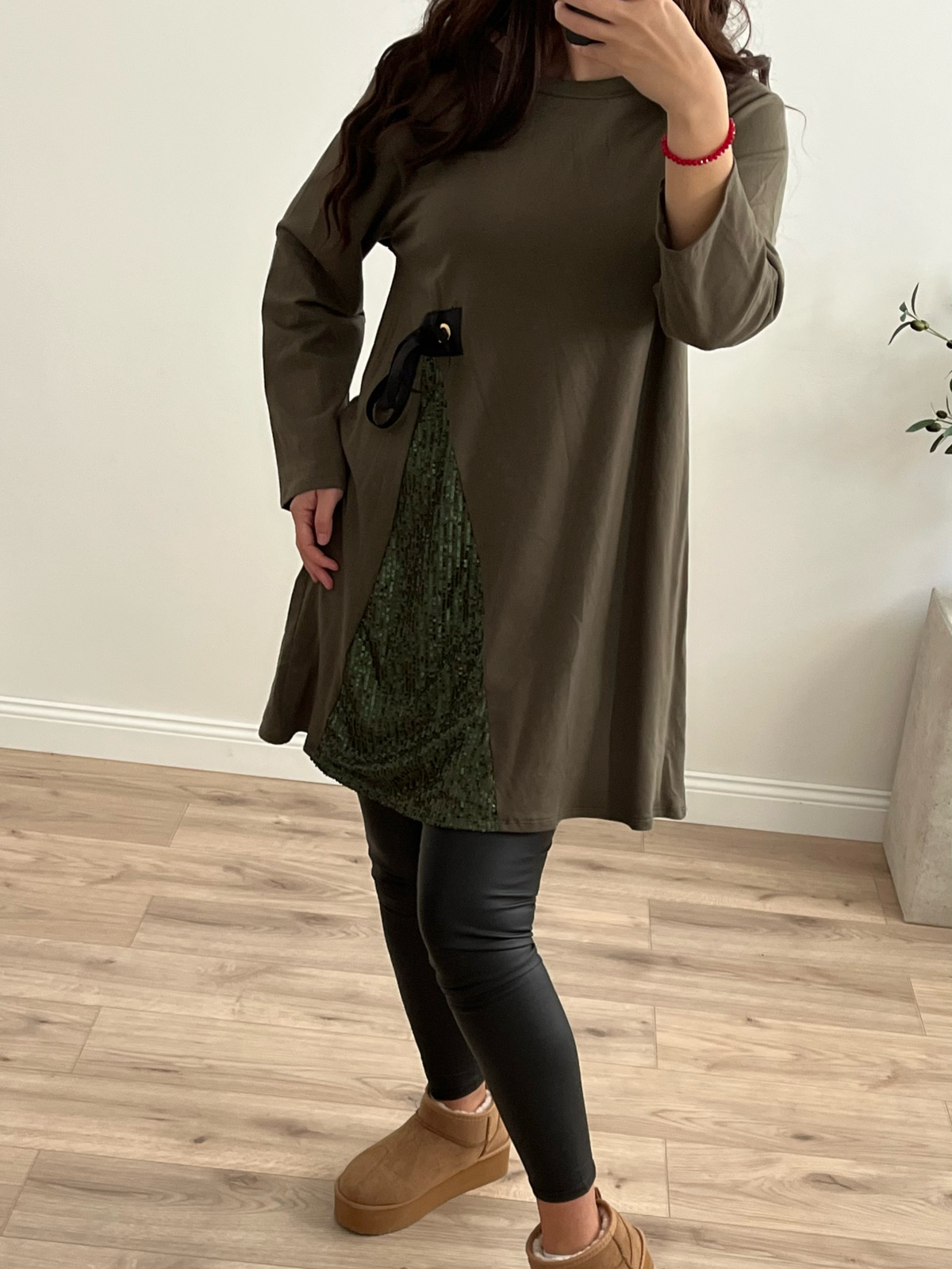Pamučna tunika dugih rukava s decentnim šljokicama ,savršena za nadolazeće svečane dane i još mnogo toga.